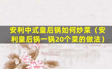 安利中式皇后锅的设计有助于锁住食物的营养和水分,使得炒出的菜肴更加美味。同时,它的耐用性和易清洁性也是其受欢迎的原因之一。使用时,根据食材的不同,适当调整火力和炒制时间,可以炒出各种美味佳肴。