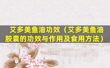 艾多美(AIDOME)是一个品牌,它可能生产和销售各种健康产品,包括鱼油软胶囊。鱼油软胶囊通常含有Omega-3脂肪酸,这是一种对人体健康有益的脂肪酸,尤其是对心脏健康和大脑功能。