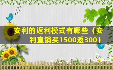 关于您提到的“安利直销买1500返300”的信息,我无法验证其真实性,因为这可能是一个特定的促销活动或者是个别销售人员的个人行为。安利(Amway)是一家全球知名的直销公司,其产品包括营养补充品、个人护理品、家居清洁用品等。