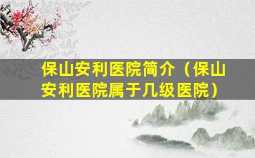 保山安利医院是一家位于中国云南省保山市的综合性医院。根据中国的医院分级制度,医院通常被分为三级,即一级、二级和三级,其中三级医院是最高级别,通常具备最全面的医疗服务和最高的医疗技术水平。