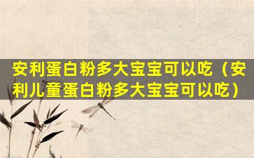 安利(Amway)是一家国际知名的直销公司,其产品包括营养补充品,如蛋白粉。关于安利蛋白粉适合多大宝宝食用,需要根据产品的具体说明和建议来确定。