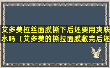 至于“艾多美拉丝面膜撕下后还要用爽肤水吗”的视频,由于我无法提供实时的视频内容,建议您可以在视频分享平台如YouTube、Bilibili等搜索相关关键词,可能会找到具体的护肤教程或产品使用说明视频。在观看视频时,请确保来源可靠,以获取准确的护肤信息。