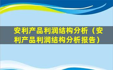 很抱歉,我无法提供特定公司的内部利润结构分析报告,因为这通常属于公司的商业机密。安利(Amway)是一家全球知名的直销公司,其产品涵盖健康、美容、家居护理等多个领域。如果您需要了解一般性的信息,我可以提供一些关于直销公司利润结构的基本知识。