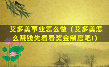艾多美事业怎么做(艾多美怎么赚钱先看看奖金制度吧!)