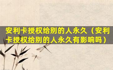 安利卡(Amway Card)通常是指与安利公司(Amway)相关的会员卡或信用卡。如果你所说的“授权给别的人永久”是指将你的安利卡使用权转让给他人,那么这种行为可能会涉及到以下几个方面的影响:
