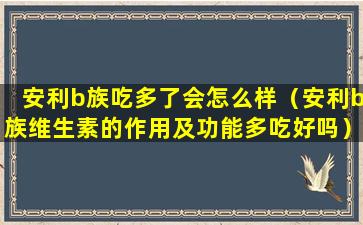 安利(Amway)是一家国际知名的直销公司,其产品线包括多种维生素和矿物质补充剂。B族维生素是一组水溶性维生素,对人体健康至关重要,它们在能量代谢、神经系统功能、红细胞生成等方面发挥着重要作用。