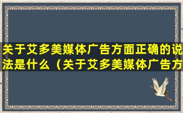 关于艾多美(AIMI)媒体广告方面的正确说法,需要基于具体的信息和上下文来确定。艾多美可能是一个品牌、公司或者产品,而媒体广告则是指通过各种媒体渠道进行的广告宣传活动。正确的说法可能包括以下几个方面: