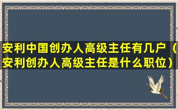 截至我的知识更新日期(2023年),关于“安利中国创办人高级主任”的具体数量并没有公开的详细数据。安利(Amway)是一家全球知名的直销公司,其在中国的发展历程中,可能会有多位高级主任级别的领导人,但具体数量会随着时间和公司内部晋升机制的变化而变化。