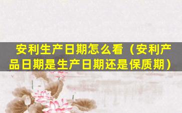 安利(Amway)产品的日期通常指的是生产日期,而不是保质期。生产日期是指产品制造出来的日期,而保质期是指产品在特定条件下可以保持其质量和安全性的时间长度。