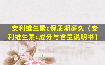 安利(Amway)是一家全球知名的直销公司,其产品包括维生素C等营养补充品。关于安利维生素C的保质期,通常情况下,营养补充品的保质期会在产品包装上明确标注。保质期是指在规定的储存条件下,产品保持其原有品质和安全性的时间长度。
