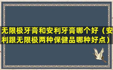 无限极(Infinitus)和安利(Amway)都是知名的直销公司,它们都生产并销售个人护理产品,包括牙膏。关于“无限极牙膏和安利牙膏哪个好”,这个问题没有绝对的答案,因为不同的人可能会有不同的体验和偏好。以下是一些考虑因素,可以帮助您做出选择: