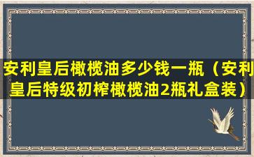 很抱歉,我无法提供关于“安利皇后特级初榨橄榄油2瓶礼盒装”的具体信息,因为这可能是一个特定地区或特定时间的产品,而且我无法访问最新的产品目录或库存信息。