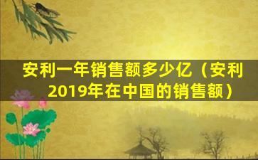 截至我所知的信息截止日期(2023年),安利(Amway)2019年在中国的销售额数据并未公开详细披露。安利是一家全球知名的直销公司,其销售数据通常会在年度报告中公布,但这些报告可能不会详细到每个国家的销售额。