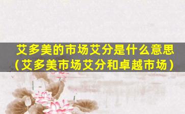 艾多美(AIM)是一家韩国的直销公司,主要销售健康食品、个人护理产品等。在直销行业中,"市场艾分"可能是指与市场推广、销售业绩或者会员等级相关的某种积分或奖励制度。由于“市场艾分”并不是一个标准的术语,我无法提供确切的定义。