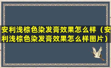 安利(Amway)是一家全球知名的直销公司,提供多种产品,包括个人护理和美容产品。安利浅棕色染发膏是该公司推出的染发产品之一。关于其效果,以下是一些可能的考虑因素:
