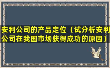 1. 市场定位准确:安利针对中国消费者的需求,提供了多样化的产品线,包括营养补充品、个人护理产品、家居清洁用品等,这些产品符合中国消费者对健康和生活品质的追求。