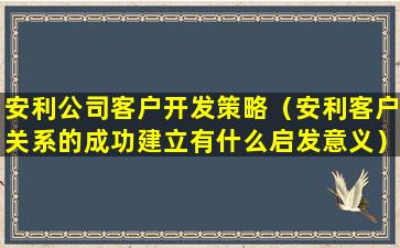 安利(Amway)是一家全球知名的直销公司,其客户开发策略主要围绕以下几个方面: