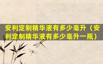 安利(Amway)是一家全球知名的直销公司,其产品线涵盖了营养补充品、个人护理品、家居护理品等多个领域。关于“安利定制精华液”的具体信息,由于产品线可能会有更新和变化,以及不同地区可能会有不同的产品版本,因此无法提供确切的毫升数。