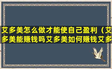 关于“艾多美”的赚钱方式,如果是指通过合法的直销渠道进行销售,那么其收入来源应当是基于产品销售的合理利润。任何企业或个人在从事直销活动时,都应当遵循诚实守信的原则,不得进行虚假宣传或者误导消费者。