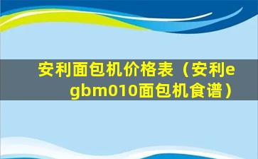 如果你有安利egbm010面包机的用户手册,建议查阅其中的食谱和使用指南,以获得更准确的操作方法和食谱建议。你也可以在网上搜索该型号面包机的食谱,或者参考其他面包机用户的分享。