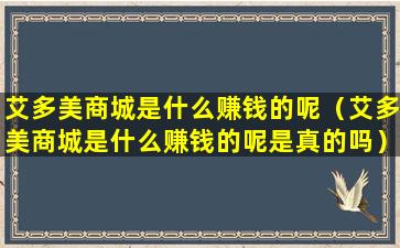 在艾多美商城中赚钱的方式通常包括以下几个方面: