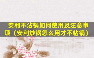 安利(Amway)是一家知名的直销公司,其产品线包括厨房用具,如不粘锅。使用不粘锅时,正确的使用和保养方法可以确保其不粘性能持久。以下是一些使用安利不粘锅的建议: