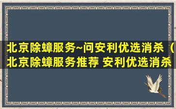至于“安利优选消杀”,这可能是某个具体公司的服务名称,但由于信息不足,无法提供具体的评价或推荐。如果您在北京寻找除蟑服务,建议您可以通过以下方式来选择合适的服务提供商: