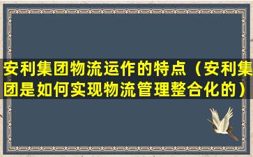 通过这些策略和措施,安利集团实现了物流管理的整合化,提高了运营效率,降低了成本,并提升了客户满意度。这些做法也帮助安利集团在全球市场中保持竞争力。