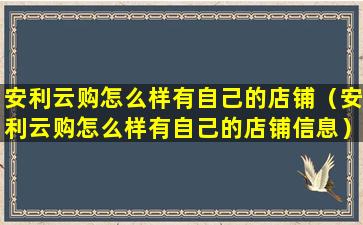 以下是一些关于如何在安利云购上拥有自己店铺信息的基本步骤: