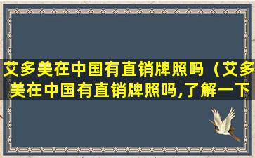 截至我的知识更新日期(2023年),艾多美(Amway)是一家全球知名的直销公司,其在中国拥有合法的直销牌照。艾多美在中国开展业务已经多年,并且遵循中国的法律法规进行运营。