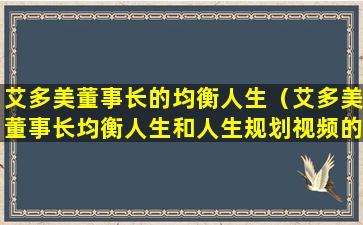 请注意,以上内容是基于一般企业领导者的均衡人生观进行的假设性描述,具体到艾多美董事长的个人理念和实践,需要查阅相关的官方资料或新闻报道来获取准确信息。如果您需要了解艾多美董事长的具体信息,建议直接查阅艾多美公司的官方网站或相关新闻报道。