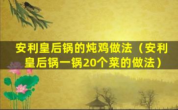 安利皇后锅是一种多功能的厨房用具,可以用来炖、煮、蒸等多种烹饪方式。以下是使用安利皇后锅炖鸡的一个基本做法: