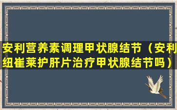 关于使用安利营养素或其他营养补充品来调理甲状腺结节的说法,需要谨慎对待。甲状腺结节是指甲状腺内部出现的一个或多个异常的团块,它们可能是良性的,也可能是恶性的。甲状腺结节的治疗通常需要根据结节的性质、大小、患者的症状以及甲状腺功能等因素来决定。