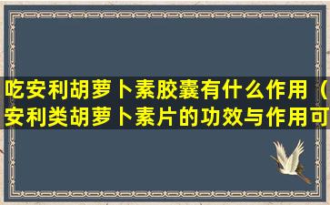 安利(Amway)是一家全球知名的直销公司,其产品线包括营养补充品、个人护理品和家居用品等。安利胡萝卜素胶囊是该公司生产的一种营养补充品,主要成分是胡萝卜素。