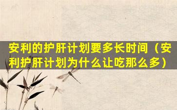 安利(Amway)是一家全球知名的直销公司,提供多种健康和营养产品。关于“安利护肝计划为什么让吃那么多”的问题,这里需要澄清几个点: