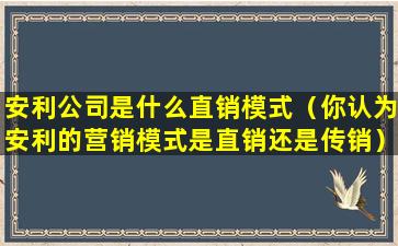 安利公司是一家全球性的直销公司,它通过独立的分销商网络销售健康、美容和个人护理产品。安利的商业模式强调产品销售和分销商的个人努力,而不是仅仅依赖于招募新成员。直销和传销之间的界限有时可能模糊,因此对于任何特定的营销计划,重要的是要仔细研究其商业模式,以确保它符合当地法律和规定。