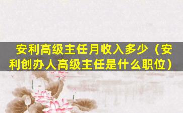 高级主任(Senior Supervisor)是安利销售代表中的一个较高级别,通常意味着该销售代表已经建立了一个相对较大的销售团队,并且有稳定的销售业绩。高级主任的收入通常包括以下几个部分: