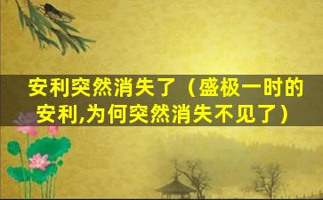 截至我的知识更新日期(2023年),安利(Amway)并没有消失。安利是一家全球性的直销公司,成立于1959年,总部位于美国密歇根州。它以销售健康、美容和家居护理产品而闻名,通过独立分销商网络进行销售。