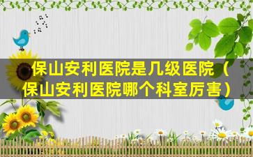 截至我所知的信息更新日期(2023年),保山安利医院的具体级别可能需要通过官方渠道或当地卫生健康部门查询确认。如果您需要了解保山安利医院的详细级别信息,建议直接联系医院或访问其官方网站,或者咨询当地的卫生健康行政部门以获取最准确的信息。