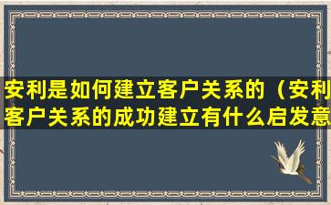 安利(Amway)是一家全球性的直销公司,以其健康、美容和家居护理产品而闻名。安利建立客户关系的方式主要基于以下几个方面: