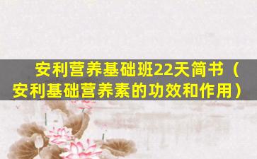 您提到的“安利营养基础班24简书”似乎是指安利公司(Amway)提供的关于营养知识的基础课程,而“简书”可能是指在简书平台上发布的相关内容。安利是一家全球知名的直销公司,以销售健康、美容和个人护理产品而闻名。