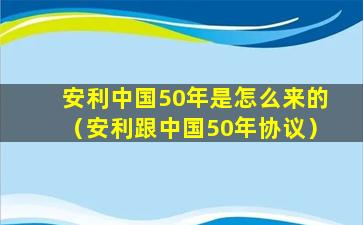 关于“安利跟中国50年协议”的具体内容,目前没有官方的详细信息公布。安利(Amway)是一家全球知名的直销公司,自1995年进入中国市场以来,一直遵循中国的法律法规,积极开展业务。中国政府一贯鼓励和支持外商投资,为所有在华企业提供了公平、公正、非歧视的市场环境。我们相信,任何在中国合法经营的企业都会得到中国政府的尊重和保护。同时,我们也期待所有企业能够遵守中国的法律法规,共同促进健康、有序的市场环境。