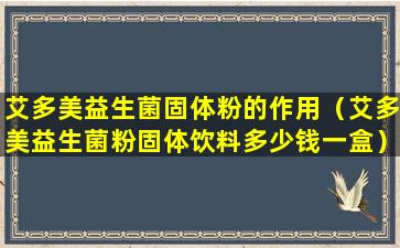 艾多美益生菌粉固体饮料是一种含有益生菌的产品,它的主要作用是帮助调节肠道菌群平衡,促进消化系统的健康。益生菌对于改善肠道功能、增强免疫力等方面有一定的益处。