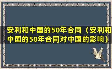 截至我的知识更新日期(2023年),安利(Amway)是一家全球知名的直销公司,其业务遍及多个国家和地区。安利在中国也有业务,但关于“安利和中国的50年合同”这一说法,并没有官方的详细信息或公开报道来证实。