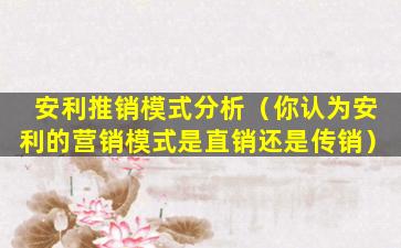 安利(Amway)是一家全球性的直销公司,其营销模式通常被认为是直销。直销是一种销售模式,生产商直接向消费者销售产品,通常通过个人销售代表进行。这些销售代表可能会通过面对面的销售、家庭聚会、在线销售等方式推广和销售产品。