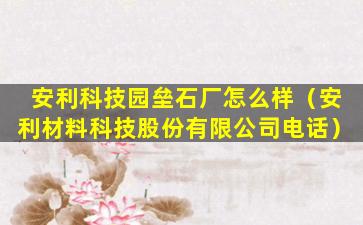 截至我的知识更新日期(2023年),我没有具体的信息关于“安利科技园垒石厂”的情况。安利(Amway)是一家全球知名的直销公司,主要销售健康、美容和家居护理产品。如果“安利科技园垒石厂”是指安利公司的一个生产或研发设施,那么它可能是一个专注于生产或研发相关产品的场所。