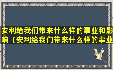 1. 经济影响:安利为许多人提供了创业机会,尤其是对于那些希望兼职或在家工作的人。通过安利,一些人能够获得额外的收入,甚至有些人能够将其发展成为全职事业。