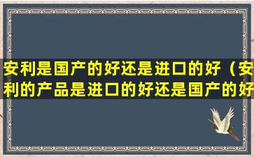 安利(Amway)是一家全球性的直销公司,其产品包括营养补充品、个人护理品、家居护理品等。关于安利产品是进口的好还是国产的好,这个问题没有绝对的答案,因为产品的质量取决于多种因素,包括生产标准、原材料、制造工艺等。