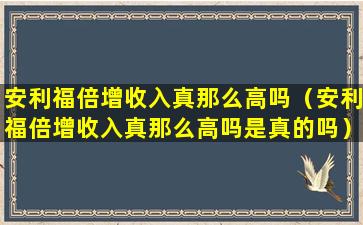 关于“安利福倍增收入”的问题,首先需要明确的是,任何关于收入的说法都应该基于事实和数据,而不是单纯的宣传或者个人主观感受。在中国,所有的商业活动都应当遵守国家的法律法规,包括但不限于《中华人民共和国反不正当竞争法》、《中华人民共和国广告法》等。