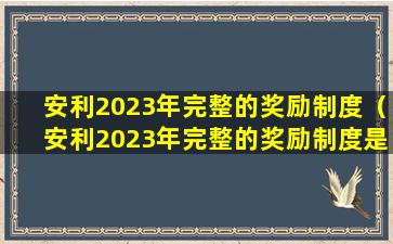 截至我的知识更新日期(2023年初),我无法提供安利(Amway)2023年的完整奖励制度,因为这通常是公司内部的商业机密,并且可能会根据地区和市场的不同而有所变化。安利的奖励制度通常包括销售佣金、奖金、奖励旅游和其他激励措施,旨在鼓励其独立业务主(IBO)销售产品和招募新成员。